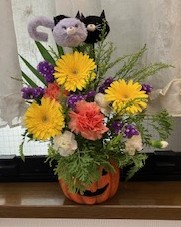 相談室では、ハロウィンにちなんだフラワーアレンジメントを飾りました。秋色の花々やかぼちゃが彩りを添え、訪れる方々にも季節の楽しさを感じていただければと思っています。